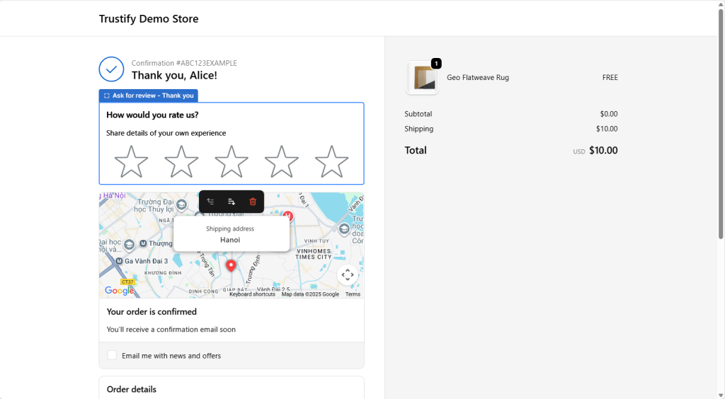 Automatically request customer reviews right after purchase — either by showing a review form on the Thank You page or by triggering Google’s Customer Reviews opt-in so Google can send a survey after delivery.