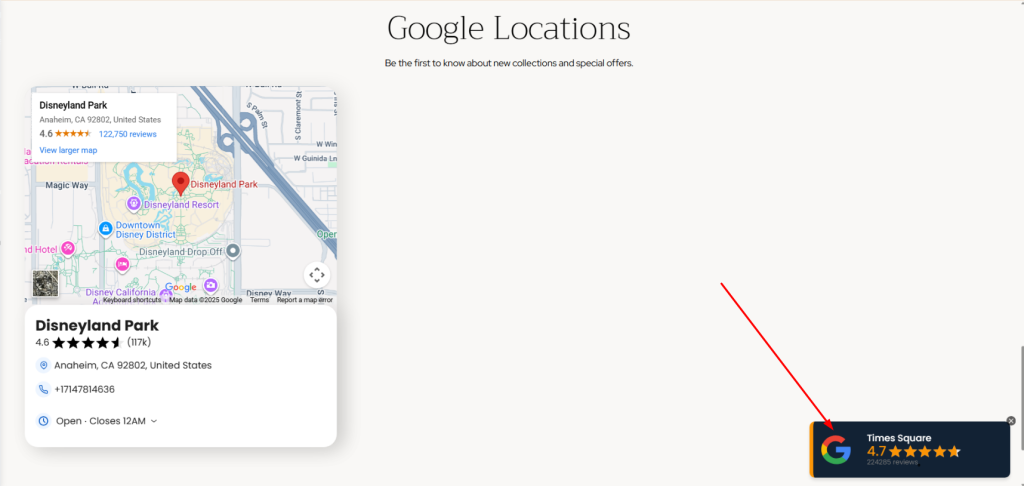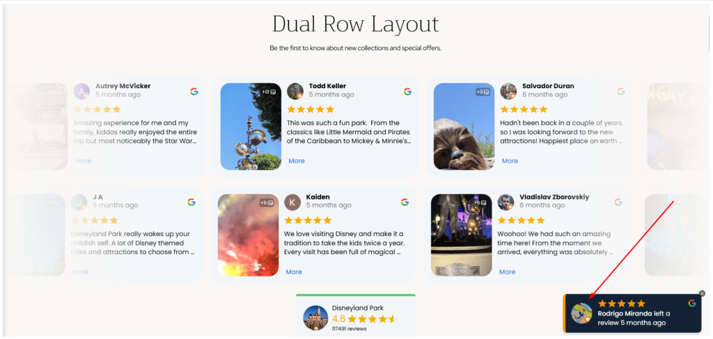 Shows a floating slider of customer reviews to attract attention and increase credibility.