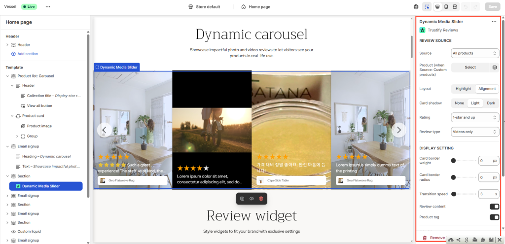 How to add Dynamic carousel widget to Shopify theme with Trustify